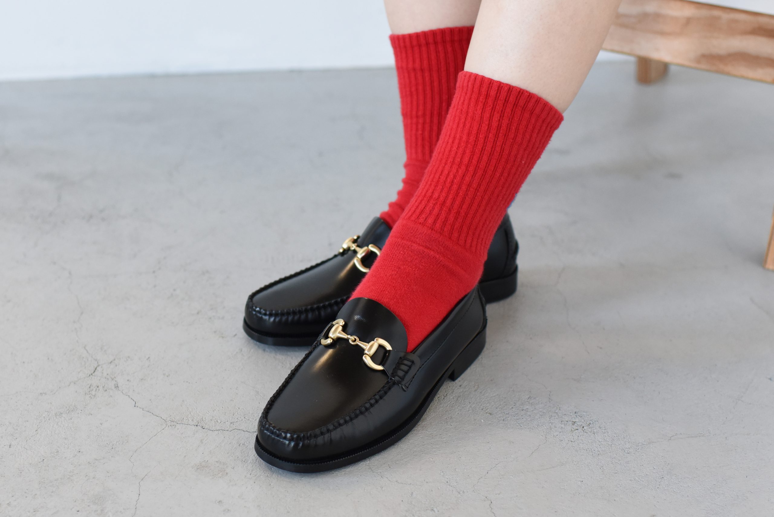 ソックスやタイツで、印象を変えられるのもローファーのいいところ。