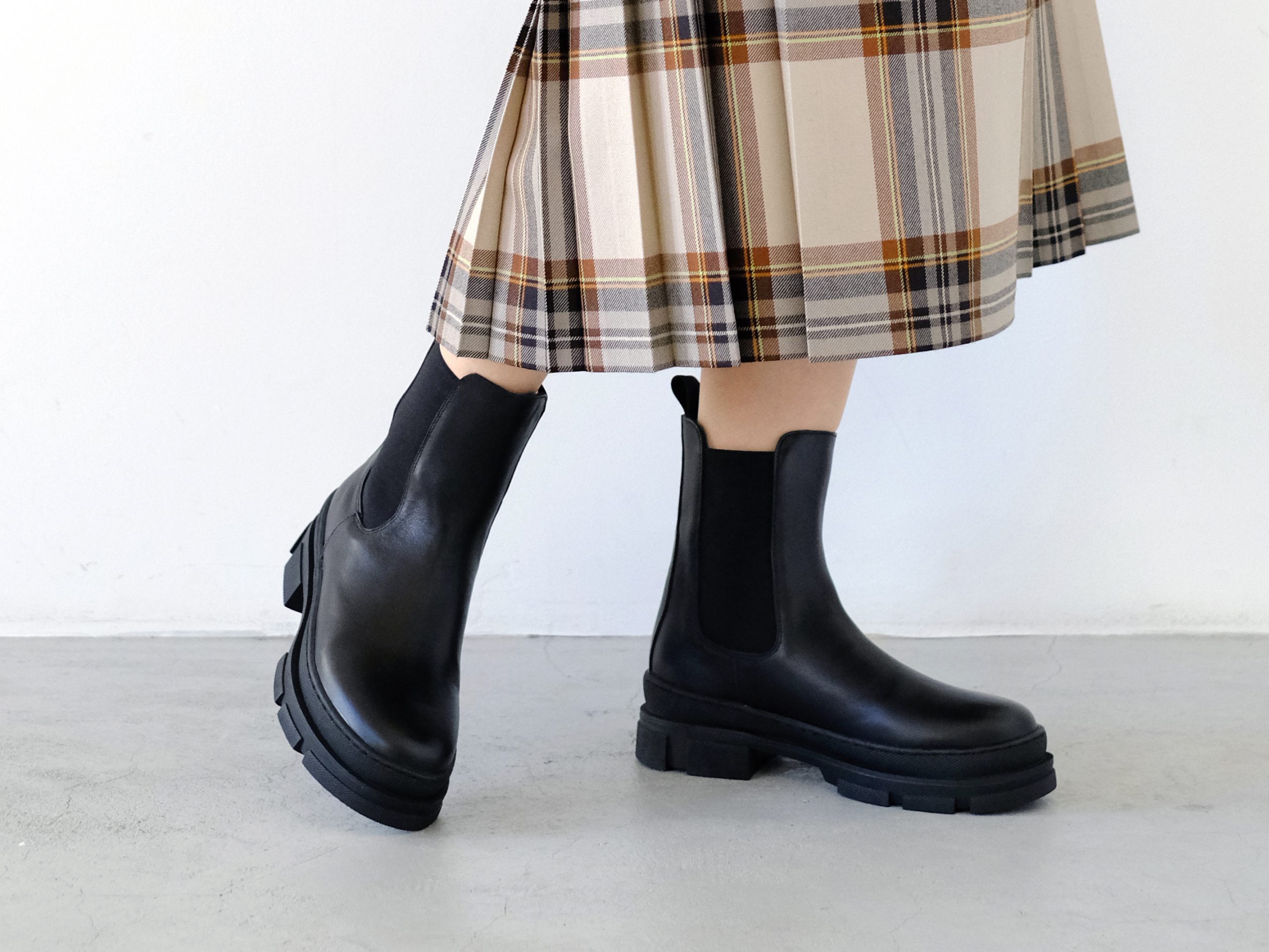 艶やかなレザーが高級感を放つサイドゴアブーツ。