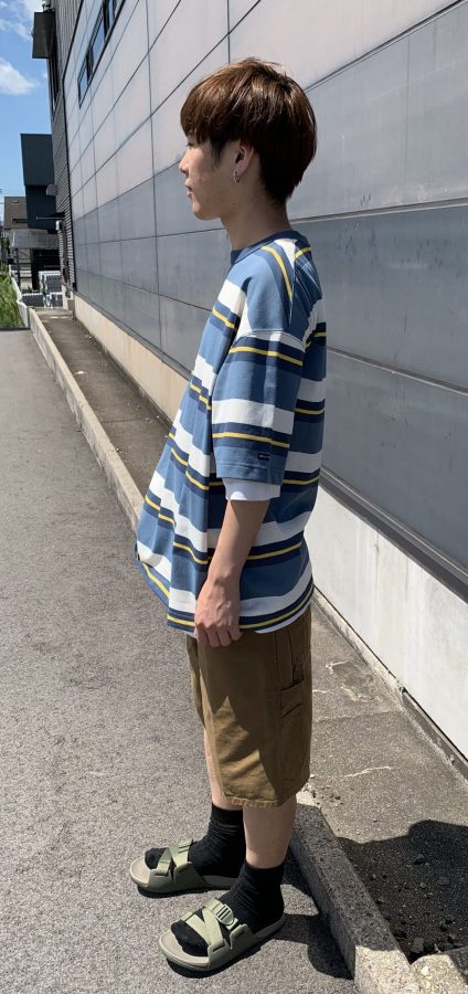 マリンテイストのマルチボーダーをあしらったTシャツ。ゆったりと着られるシルエットに仕上げてあります。