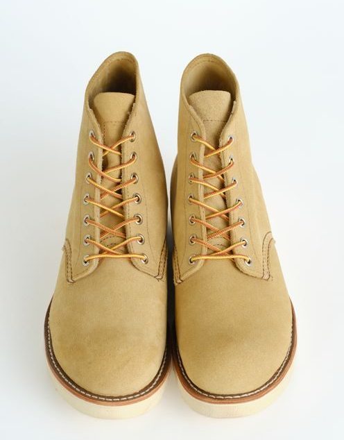 ベージュ色のラフアウトレザー(ホーソーン「アビリーン」ラフアウト)を使用した、6インチ丈のクラシックラウンドトゥブーツです。