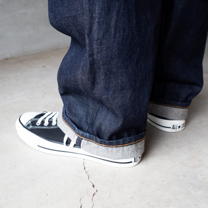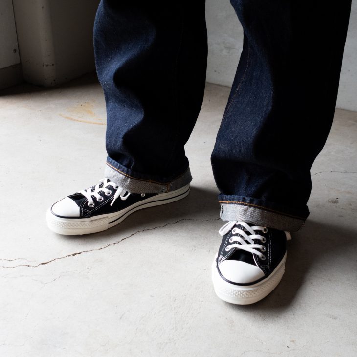 ビンテージレプリカ系のジーンズとの相性もイチバン良いのがコンバースです。