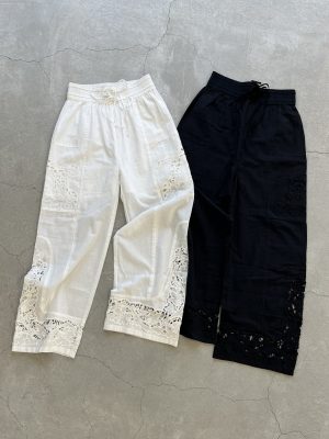 インドのカットワークレースをふんだんにあしらったパンツ。