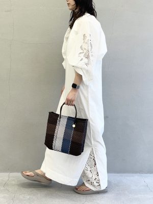 この時期大人気なOOFOSに、メルカドバッグを合わせ、涼やかな雰囲気のスタイリングにしてみました。