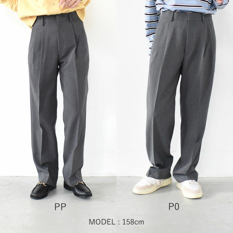 ハイウエストが定着している今、腰履きという新しいバランスはワードローブに迎えたい1着。メンズ工場で作ったマーベルト仕立てでありながら、ポリエステルの生地を使うことでホームクリーニングが可能という優れもの。同系色のニットとのワントーンコーデはもちろん、シャツをインしたメンズライクなスタイリングにもオススメです。 腰履きで着ていただくサイズ感にしてますので、普段の1サイズ下を推奨しております。