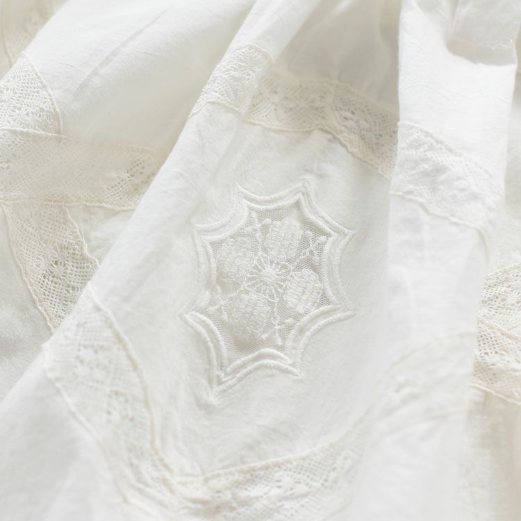 ヴィンテージのピロケースと子供用エプロンから着想したパーツを組み合わせ、唯一無二のcrinkle crinkle crinkleらしいアイテムに仕上げました。
