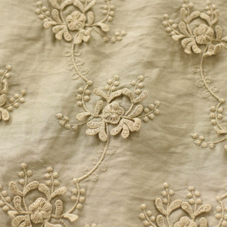 刺繍デザインでありながら、メンズライクにもスタイリングできるバランスアイテム。
