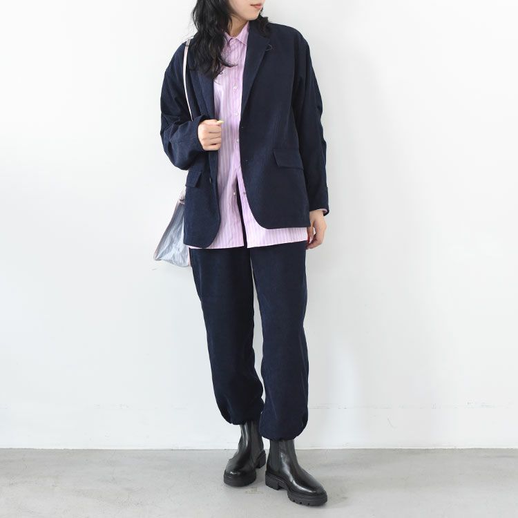 上品な表面感を意識した細コールのコーデュロイ素材。タテ糸/ヨコ糸150デニール使用により、軽やかな生地設計でありながら丈夫さも兼ね備えた生地。