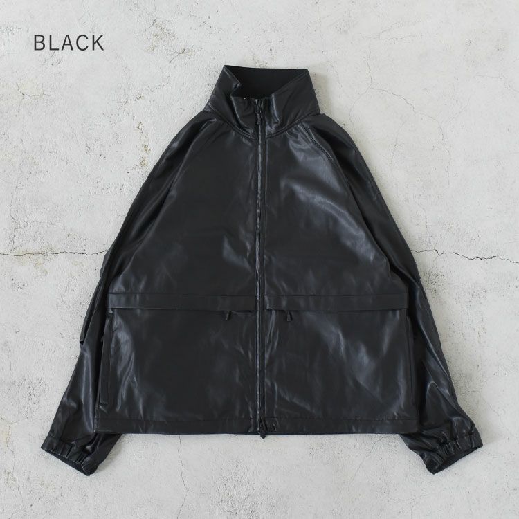 どこか懐かしいウィンドブレーカージャケットをシンセティックレザーにてアレンジした意欲作。シンプルなデザインにしているが、フロントにはサイドポケット、ベンチレーション部を活用したフラップポケットなど、隠れた機能を持たせている。内側は総裏メッシュ仕立てで、ドライタッチに着用できるのもポイント。 大小様々なポケットワークを施し、タックルケース、ルアーケース、モバイルなどを収納出来るようデザイン。見た目以上に収納力の高いトラックジャケット。インナーには複数のインサイドポケットを配しており、十分な収納力を持ち合わせている。ミリタリーのディテールでもある前振りの袖がデザインアクセント。アクションプリーツを加え、腕の可動域を広げられるように考えたデザイン。