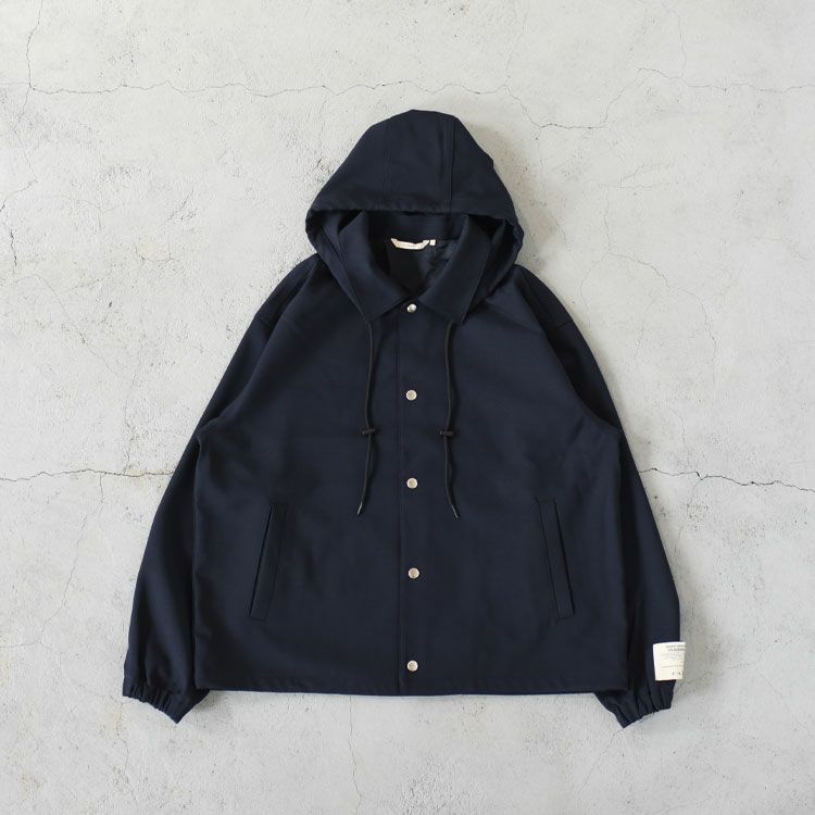 やや光沢感があり、柔らかくハリのある生地感が特徴のフーデッドコートジャケット。軽量で非常に楽に羽織ることができ、シーズンを問わずご着用いただけます。スタイリングに合わせてフードを取り外すことも可能です。