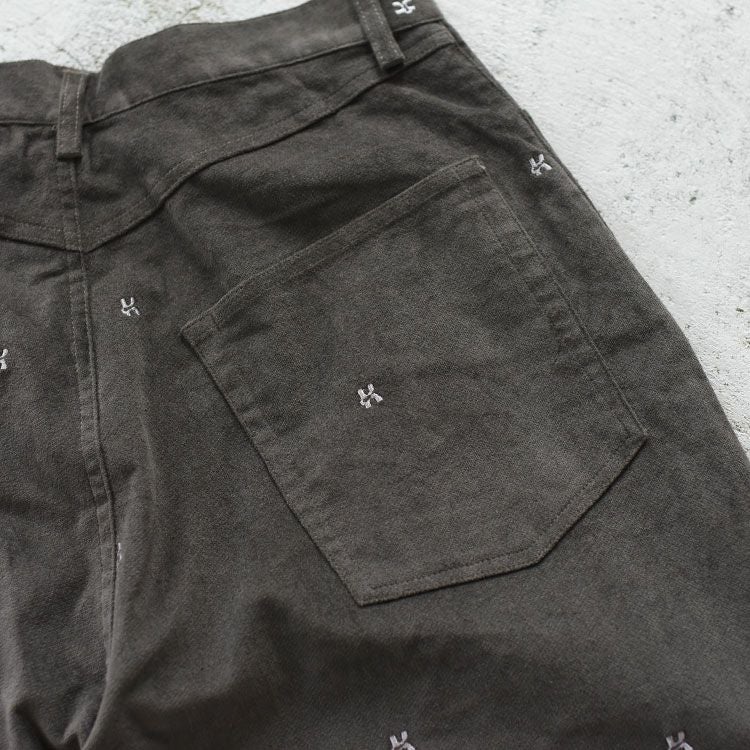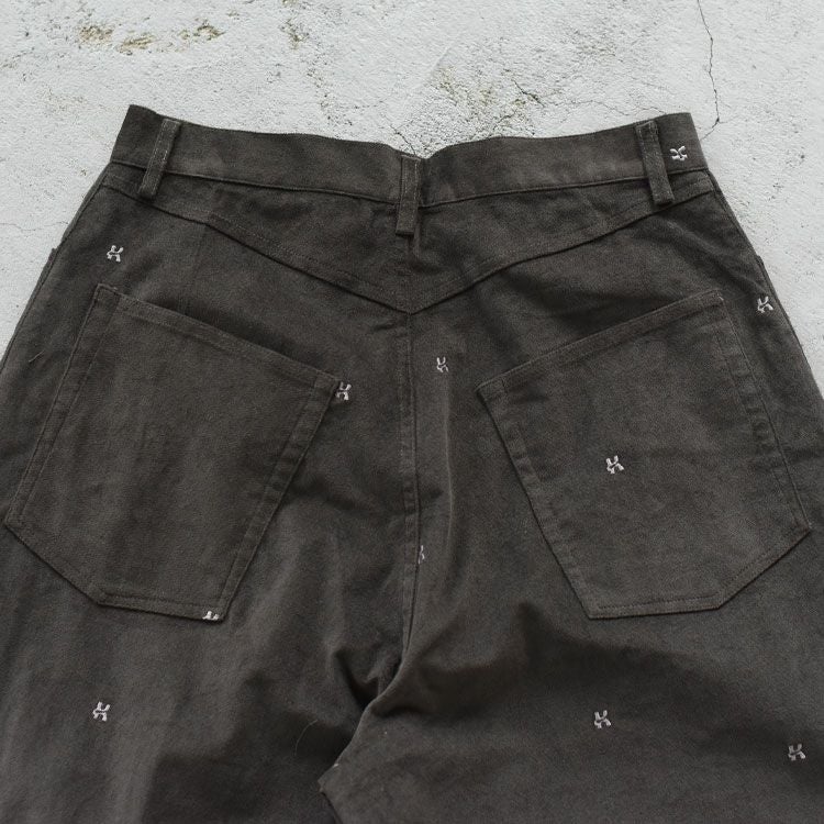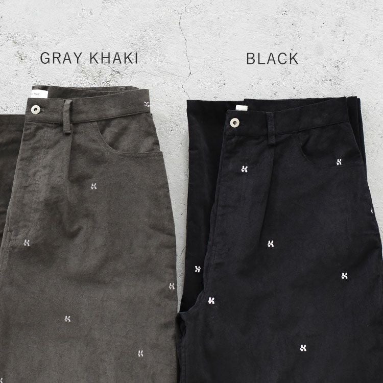 繊細な刺繍を散りばめたワイドパンツ 【SALE 25%OFF】K motif velveteen pants(unisex) kモチーフベルベティーンパンツ/KM25WN02/Knuth Marf(クヌースマーフ)【返品交換不可】