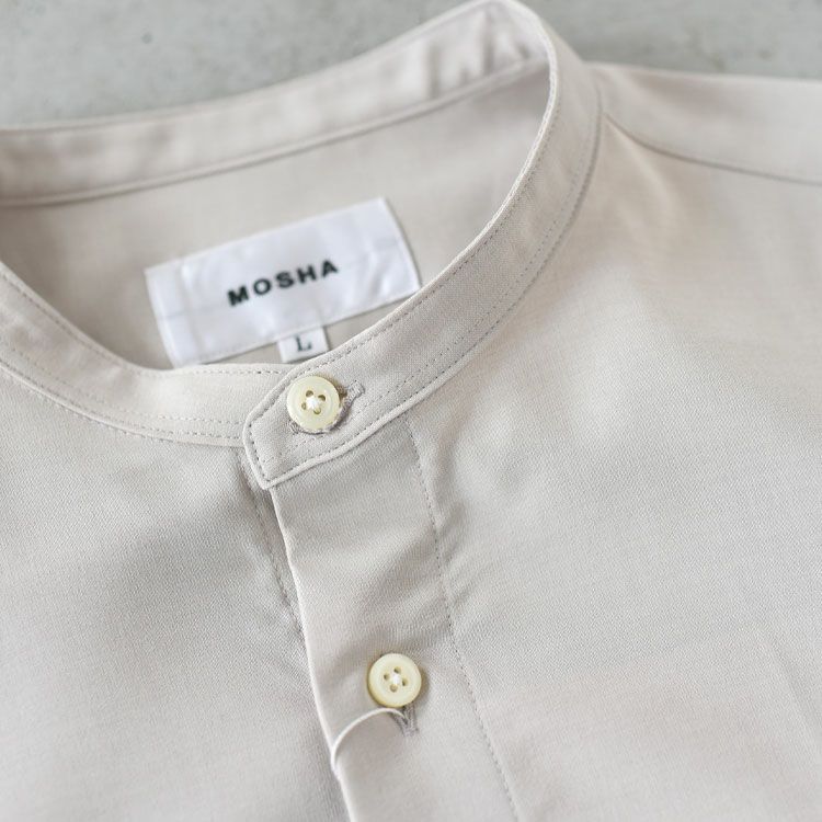 Reflax(R)ECOウエザーストレッチを使用した日本製オリジナル バンドカラーシャツ。 麻のようなナチュラル感とドライな風合いの合繊生地を使用。 シワになりにくく、イージケア性と毛羽の出にくい着心地の良さが特徴。 大きすぎず、ジャスト過ぎない絶妙なRELAXサイズ。 しなやかなストレッチ性もありストレスフリーな一枚です。モデル着用サイズsize:L color:NAVYMODEL DATA height:170cm weight:68kg