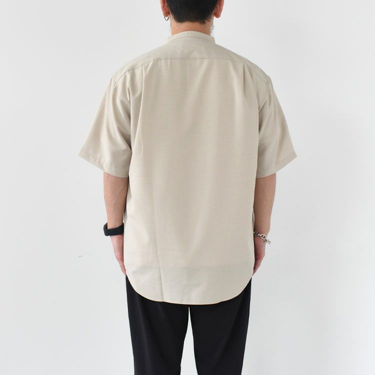 Reflax(R)ウエザークロスを使用した日本製オリジナルカラーシャツ。 麻の様なナチュラル感とドライな風合いのリネンライクファブリックを使用。 シワになりにくいイージケア性と毛羽の出にくい着心地の良さが特徴。 大きすぎず、ジャスト過ぎない絶妙なRELAXサイズ。 しなやかなストレッチ性もありストレスフリーな一枚です。モデル着用サイズsize:L color:NAVYMODEL DATA height:170cm weight:73kg