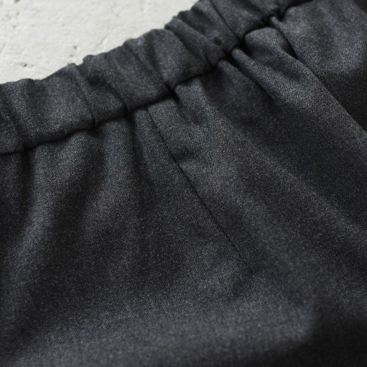 ブリティッシュライクなジョッパーズパンツをベースにデザインした、裾切り替えのテーパードパンツです。ジョッパーズ特有の太ももにゆとりを持たせ、裾に向かって細くなる立体的なシルエットで脚をすっきり見せます。裾の切り替えがアクセントとなり、ゆったりとしながらも丸みのあるラインが上品な印象を演出。9分丈の軽やかな丈感で足元に抜け感をプラスします。フロントはファスナーのないフェイク仕様で、ウエストはフラットベルト付きのデザインのため、トップスインしたスタイルも美しく決まります。ウエストは後ろゴム仕様で快適なフィット感。ウールライクな微起毛感のある合繊素材はさらりとした肌触りでも程よい厚みがあり、寒い季節も温かく着用いただけます。落ち感がありシワになりにくく、カジュアルにもきれいめにも合わせやすい一本です。裏地なし・サイドポケット付き。