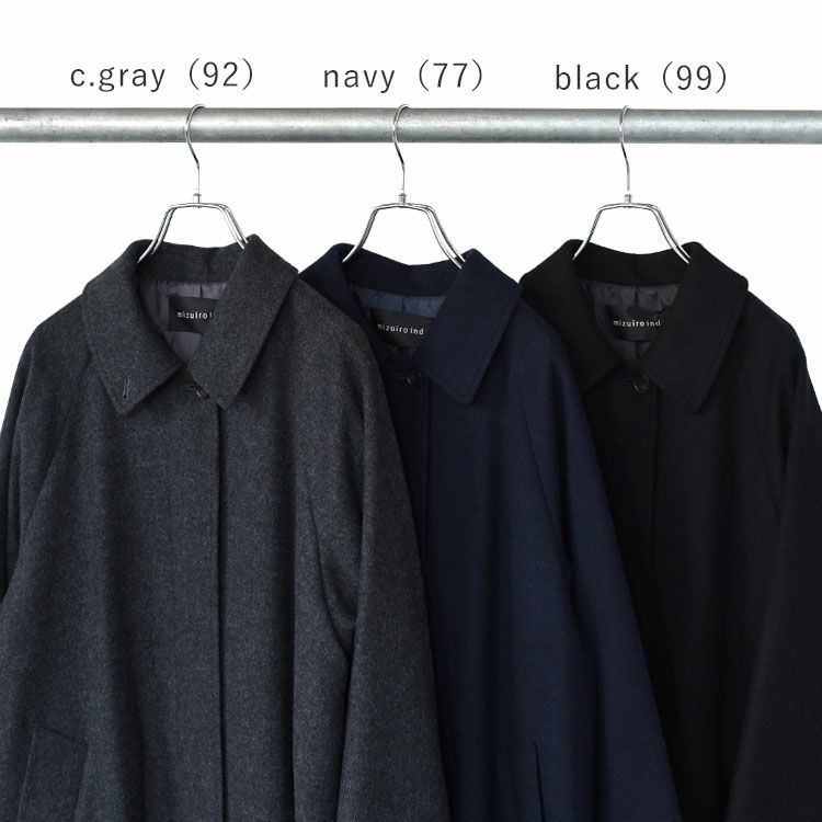 ボリュームがありながらも軽くて羽織りやすいロングコート wool blend balmacaan coat ウールブレンド バルマカーンコート/4-270041/mizuiro ind(ミズイロインド)