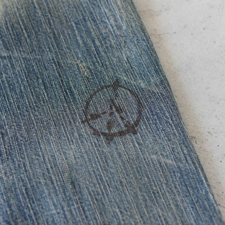 12オンスと感じさせない重厚感のあるオリジナルデニムは、ショートピッチのスラブ糸 (太さに強弱のある糸) をタテ糸にランダムに使用して織り上げています。 昔の紡績技術が未熟だった時代の粗野な糸で織られたヴィンテージの生地を再現しています。 色落ちは、綺麗なタテ落ちをしつつ、生地をライトに仕上げているので最初から腰が抜けて柔らかい着心地に仕上がっています。
