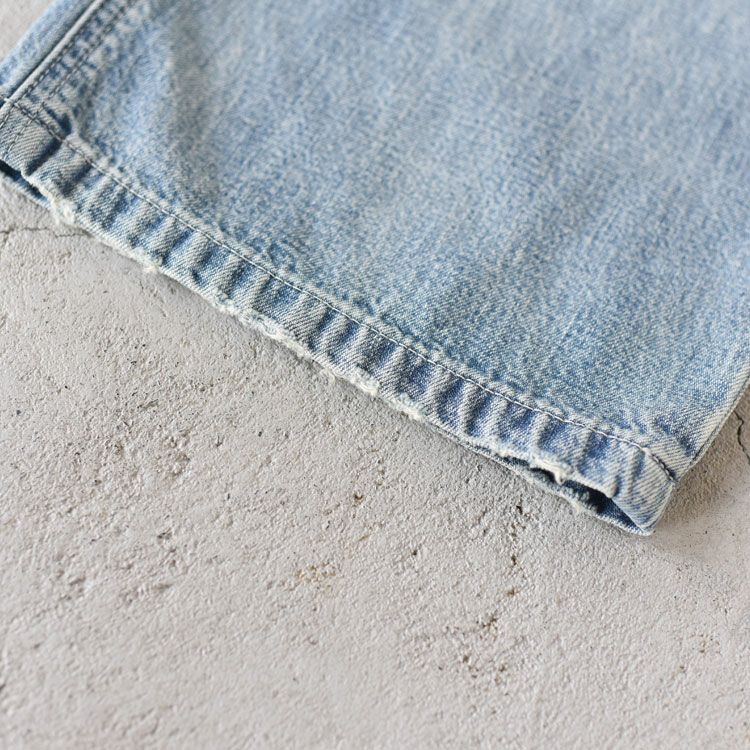 アメリカ西海岸の空気感を纏った、ハードなエイジング加工が魅力の一本。古着のような風合いながら、どこか上品さも感じさせるデニムです。空の色を思わせる独特のブルーが街中でも目を惹き、ステッチワークやポケット配置などクラシカルなペインターパンツのディテールも忠実に再現。