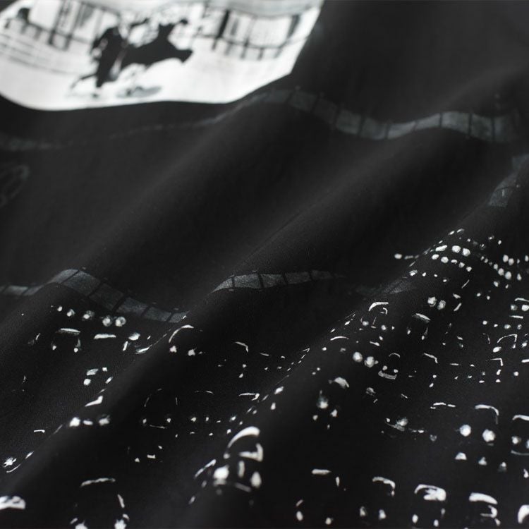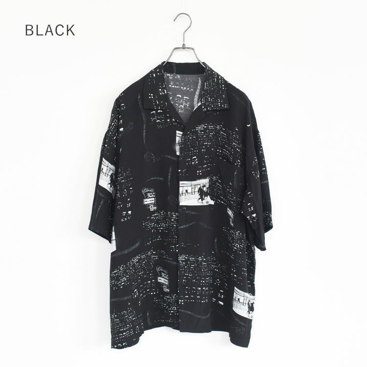 夜風が心地よい夏の夜、車の中から見上げた巨大スクリーン。 そんな映画と音楽の交差点をテーマにした、カルチャー薫る総柄アロハ。 ゆったりしたシルエットが映える、"観る"よりも"魅せる"1枚。