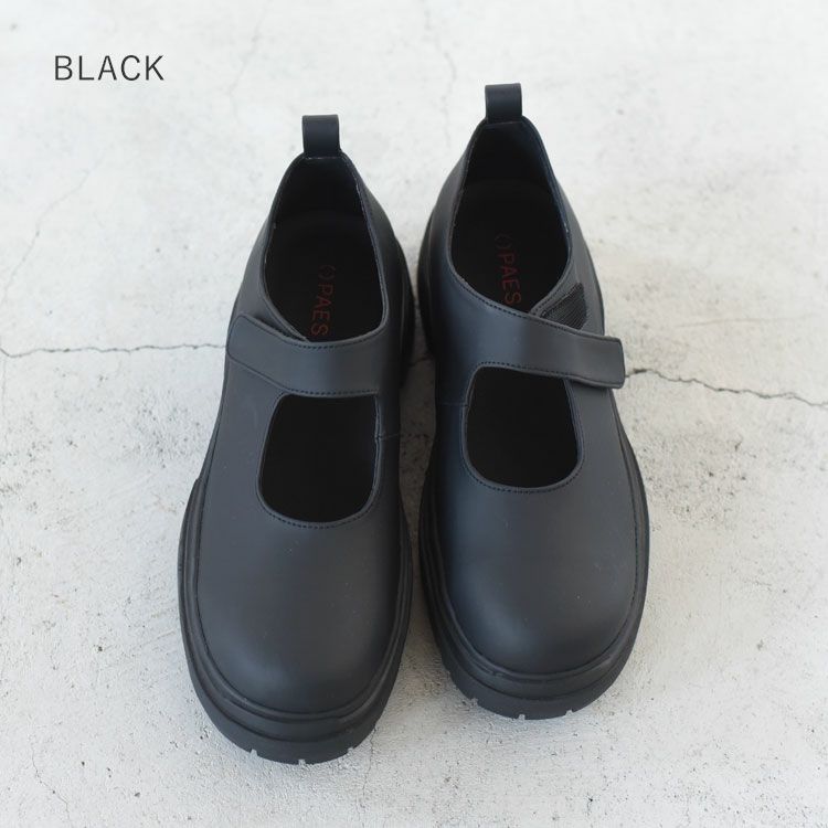 撥水コーティング加工素材を使用した、無駄のないすっきり感が魅力的なレインメリージェーン。 エレガントな曲線のシェイプと<PAES>を象徴する独特なアウトソールが新鮮です。 雨天時だけでなく、デイリーも着用しやすいデザインがポイント。 ブーツとは違うレインシューズをお探しの方におすすめのアイテムです。モデル着用サイズsize:4(25.0cm) color:BLACKMODEL DATA height:172cm