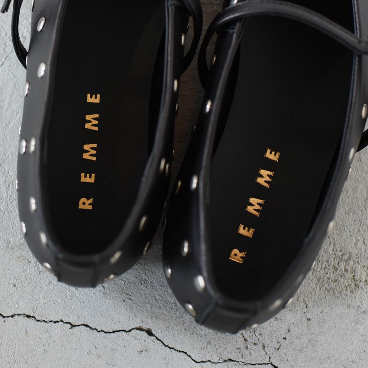 ランダムに配されたスタッズが印象的なメリージェーンシューズ スタッズレザー メリージェーンフラットシューズ/ZH-25S004-SO/REMME(レメ)