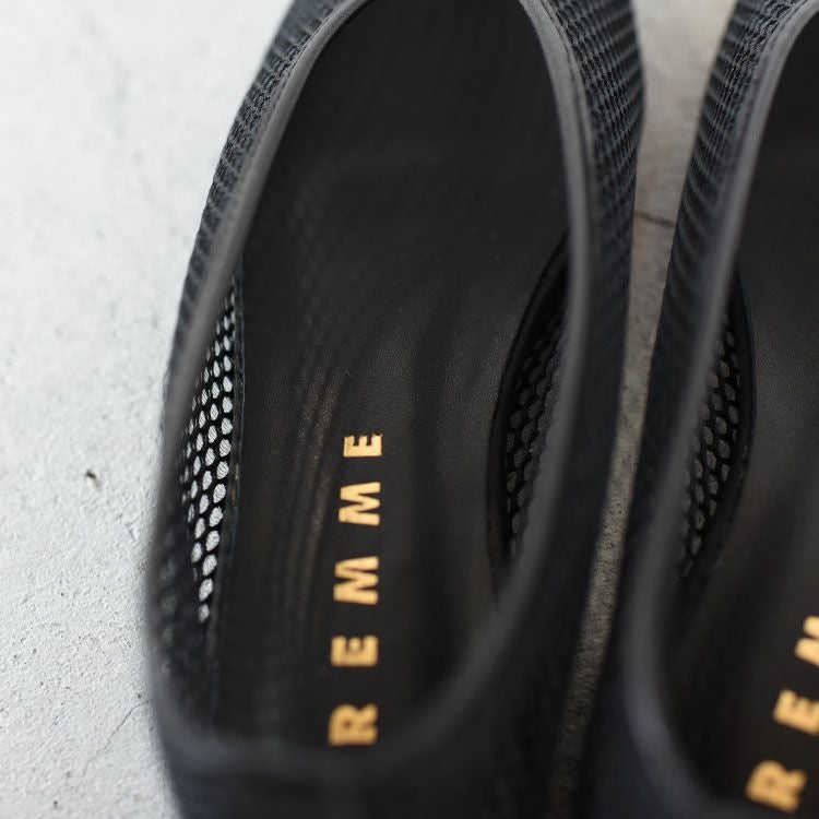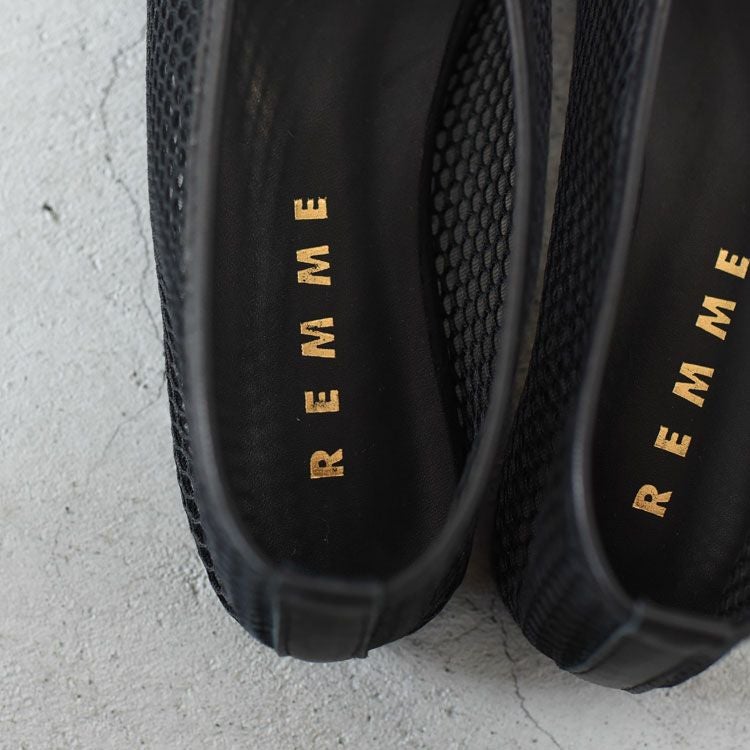 繊細なメッシュ素材を使用した、REMMEのフラットシューズ。