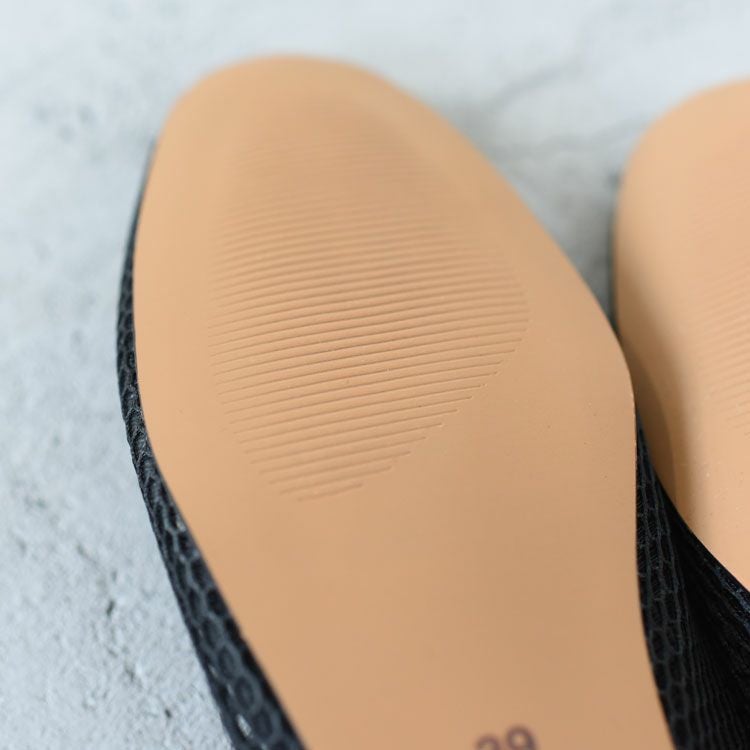 甲を包み込むようなデザインで、フラットながら安定感のある履き心地。