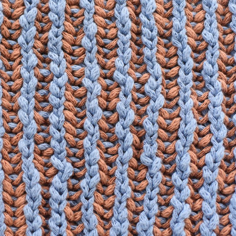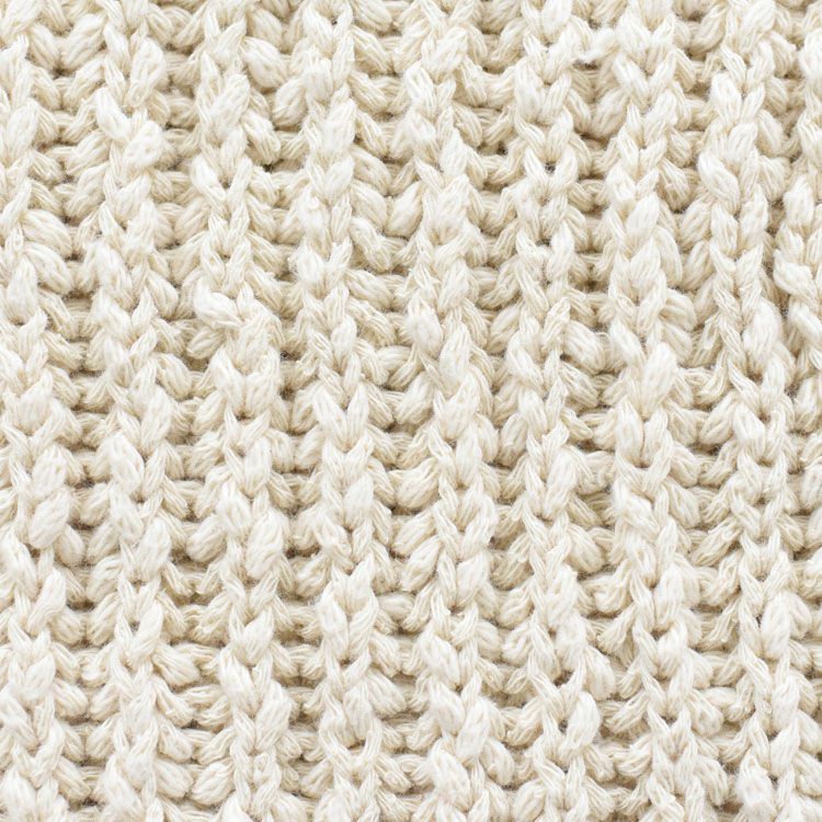糸の太さを敢えて揃えず編み込むことで、テクスチャーに凹凸感を生みだして、ニュアンスのある仕上がりとなっています。