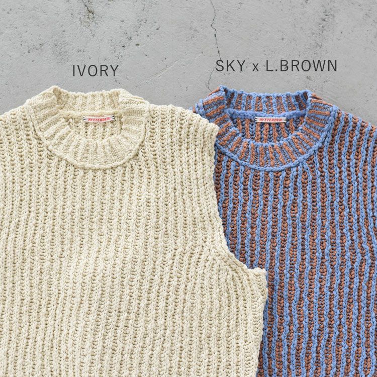 ソーセージスラブヤーンをADFという特殊機に掛け編み上げたベスト。