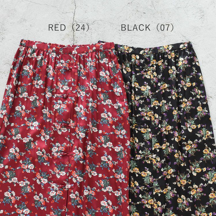 チャイナボタンをあしらったロングスカート 【SALE 20%OFF】FLOWER BOUQUET PRINTED SATIN SKIRT フラワーブーケプリントサテンスカート/25AMSSK01/THE SHINZONE(シンゾーン)【返品交換不可】