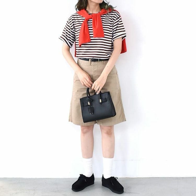 長めの丈が気になる膝をカバー。カジュアルになりすぎず履いていただけます。