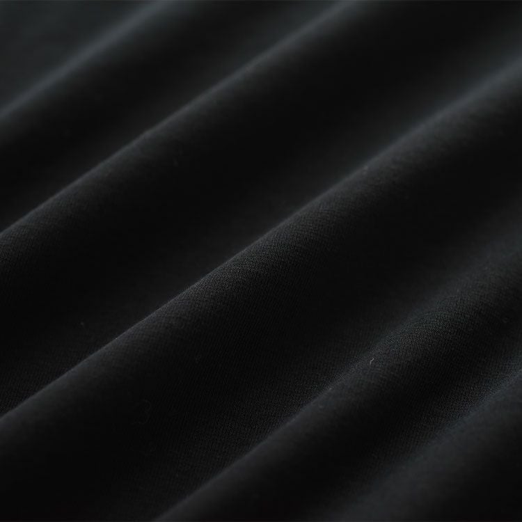 素材には、プルンとしたハリ感と独特のドライタッチを持つフライスを採用。ストレッチ性のあるポリエステルを追撚することで、程よい反発性を実現しました。接触冷感性と吸水速乾性も備えているので、アクティブなシーンにも最適です。