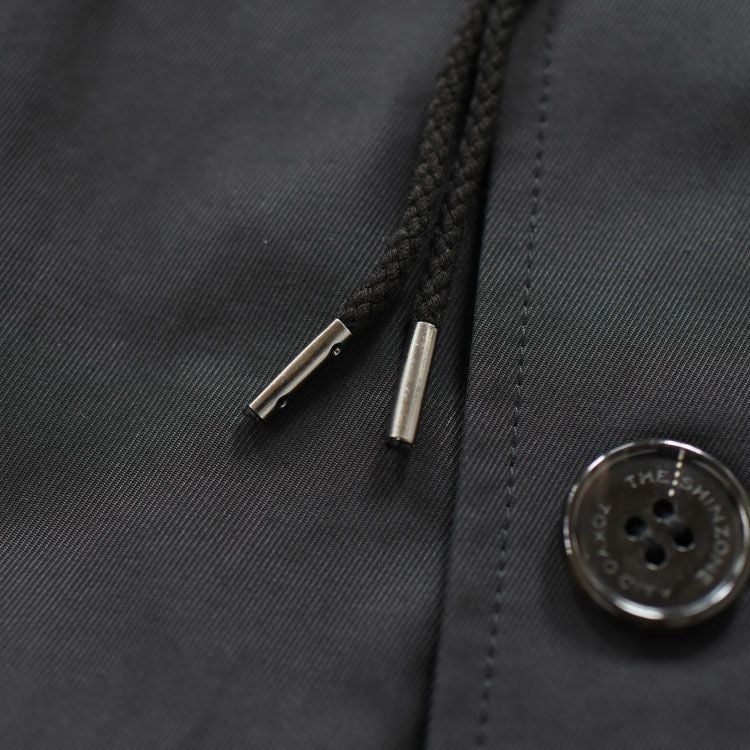 今シーズンのテーマを象徴するようなアウトドア調アウターです。立体的なフラップ付きパッチポケットと左身頃の片玉縁ポケットがポイント。スタンドカラーの襟には取り外し可能なフードがついています。また前後に段差をつけた身丈の後ろ身頃はヒップが隠れる長さがあるので、カジュアルになりすぎません。機能的でスタイリッシュなShinzoneらしいアウターです。