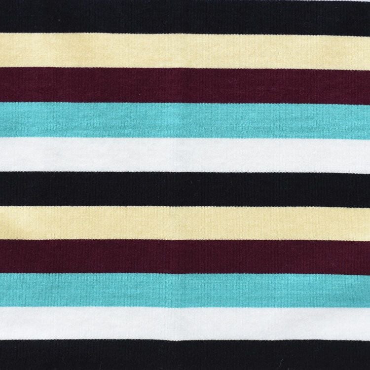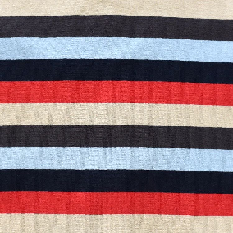 太めのピッチで5色をミックスしたボーダーは、鮮やかな色と落ち着いた色のバランスが良く、大人らしい印象に。