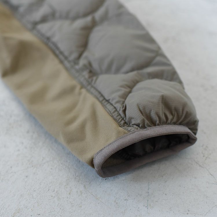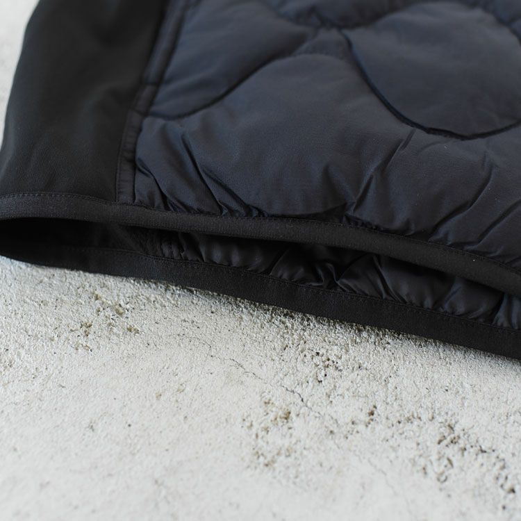 表地には防風性と通気性を備える「パーテックスカンタムエコ」を採用。中わたには2種類の形状を組み合わせた「プリマロフトサーモプルーム+」を封入し、高い保温性ながら軽くてやわらかな着心地です。脇下と袖の内側にストレッチフリースを配置してランニングの動きに追従。