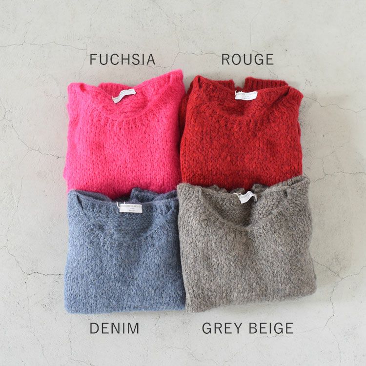 ふっくら編んだ柔らかくボリューミーなモヘヤ混ローゲージニットプルオーバー。 ドロップショルダーで、女性らしいリラクシーなシルエットとなっています。
