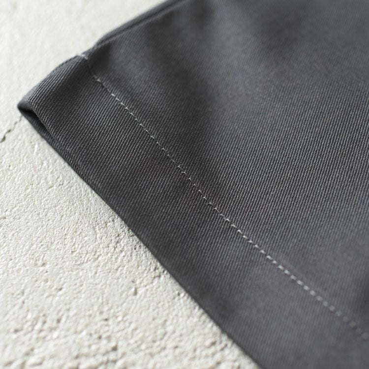 ポリエステル65%、コットン35%の混率で織り上げた頑丈なツイル生地を使用したワークトラウザース。生地は肌触りの良さに加えシワになりにくく、特有の光沢感が特徴。TUF-NUTのヴィンテージトラウザースは尿素ボタン仕様のものが多くみられるが、利便性を考慮してブランド名が刻印されたスナップボタンを採用している。ウエストのコインポケットやブラス製のTALONジッパーなど、ヴィンテージのディテールを取り入れつつも、現代の生活に合わせポケット口や袋布はやや大きめの設計。シルエットは太めのストレートで、全てのウエストサイズのレングスを統一している。