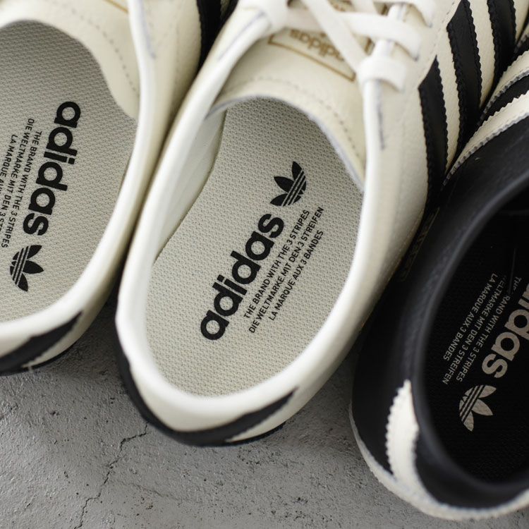 滑らかなレザーと天然皮革のアッパーと薄いシルエットが、レトロな雰囲気を放つ、今の時代に似合う、モダンなデザイン。 color:Core Black/Off White(JQ0598)