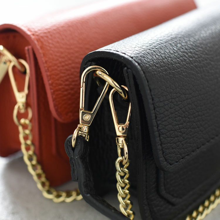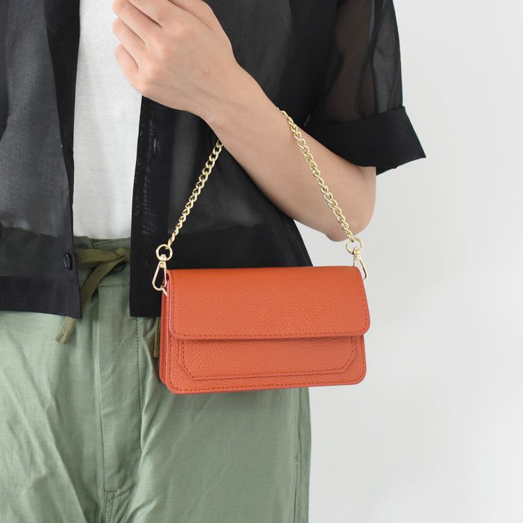 アクセサリー感覚で楽しめるコンパクトサイズのショルダーバッグ。ミニマルなデザインが上品で魅力的です。チェーンとショルダーの2WAY仕様になっており、気分に合わせて使い分けられるのが嬉しいポイントです。モデル着用サイズsize:F color:PAPAYAMODEL DATA height:170cm