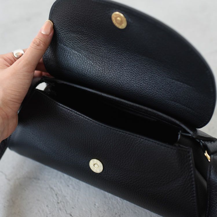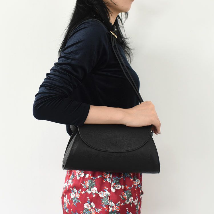 コロンとしたシルエットが可愛いショルダーバッグ。シンプルながらも存在感のあるフォルムで、コーディネートのアクセントに。 カジュアルにもきれい目にも合わせやすいので、様々なシーンで活躍すること間違いなし。小ぶりながらもしっかりと収納力があり、実用性も兼ね備えたアイテムです。モデル着用サイズsize:ONE color:BlackLADIES MODEL height:172cm