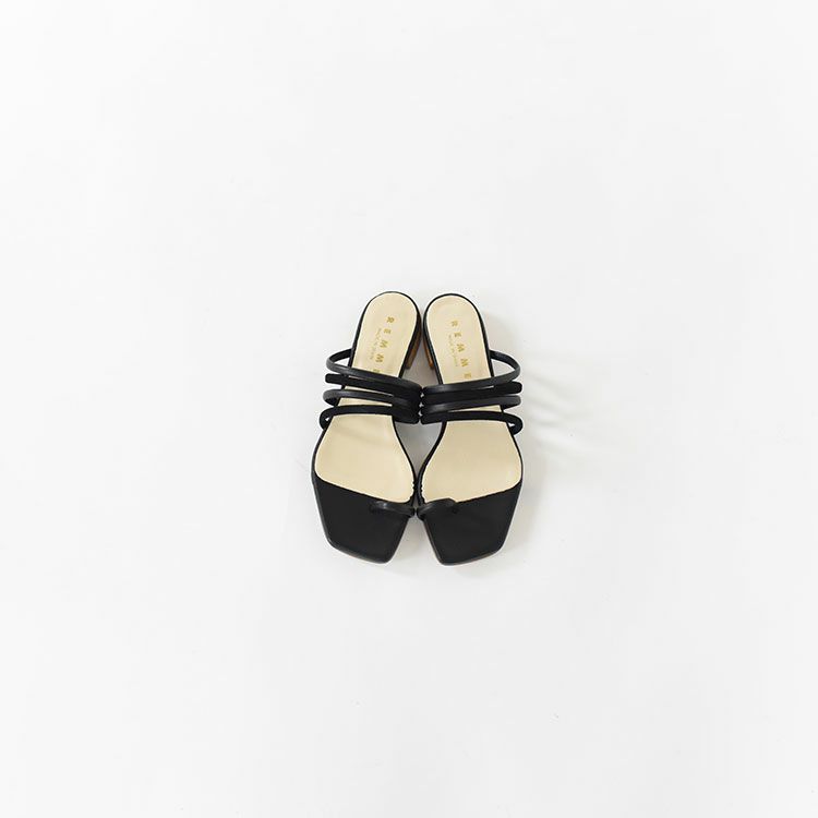 大人気のREMMEから抜け感のあるサンダルの登場です。スクエア型が大人な雰囲気。ストラップはスエードと表革の2種が交互に配されています。華奢なデザインですが、しっかり足元にフィットしてくれます。フラットなので歩きやすいのもオススメポイント。メンズライクなパンツスタイルはもちろん、ロングスカートなどにもおすすめです。