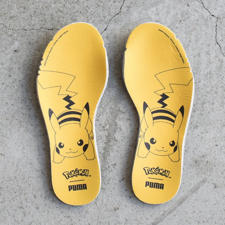 ポケモンワールドのエネルギーを余すことなく詰め込んだデザインは、昼間の遊びから夜のおでかけまで、あらゆるシーンで足元をクールに彩ってくれます。ミステリアスなブラッキーが好きな子も、ピカチュウの電気のように弾けるエネルギーを楽しみたい子も、この一足なら自分らしい“トレーナースタイル”がきっと見つかります。スニーカーのベースには、プーマ フェードの大胆なシルエットを採用。丸みを帯びたつま先とレギュラーワイズが足に優しくフィットし、レースクロージャとフラットヒールが安定した履き心地を提供します。さらに、PWRFRAMEテクノロジーが足の動きをしっかりサポートし、走る・跳ねる・遊ぶを思い切り楽しめる構造に仕上がっています。インソールには ピカチュウのイラストをあしらい、足を入れた瞬間にもワクワク感をプラス。そして、付属の ピカチュウのキーチェーン はバッグやスニーカーにつけられる嬉しい特典です。PUMAとポケモンの 共同ブランディングディテール も随所に施され、コラボならではの特別感を楽しめます。4歳~8歳のお子様におすすめのサイズ展開 で、通学にも休日のおでかけにもぴったり。ポケモンの魅力とPUMAのスポーティなデザインが融合した、キッズの毎日をもっと楽しくする一足です。