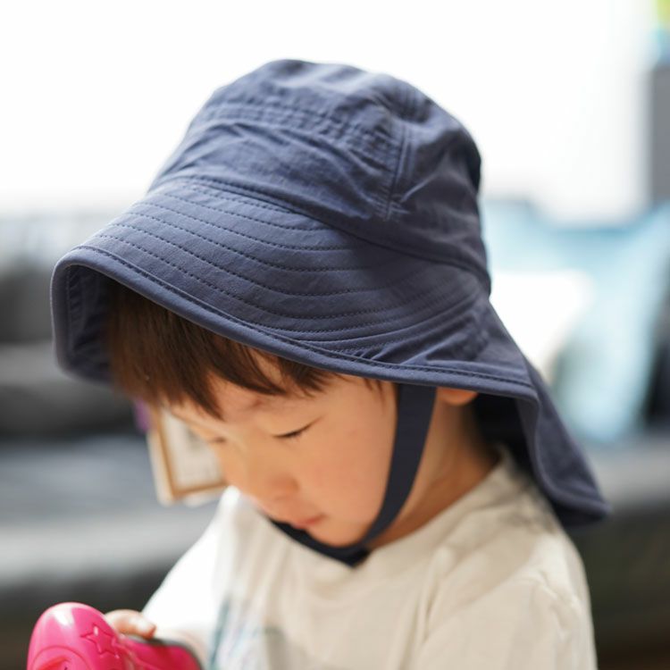 日差しを遮るつばを360度備え、後部のドレープが首をしっかりと保護し、風が強くなったら肌を擦らないチンストラップでしっかりと固定することが可能なサファリスタイルの帽子。素材はリサイクルされた漁網を使用し海洋プラスチック汚染の削減に貢献するネットプラス・ポストコンシューマーリサイクル・ナイロン100%のファイユ。PFCフリーDWR加工(フッ素化合物不使用の耐久性撥水コーティング)済みで、UPF(紫外線防止指数)50+のUVプロテクションを提供。フェアトレード・サーティファイドの縫製を採用
