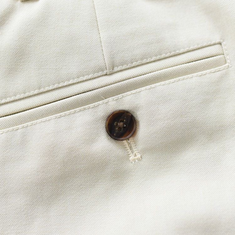 フロントのタックから続くプリーツディテールが特長的なワイドパンツ。深めのタックが裾にかけてスッと落ち、緩やかにプリーツが広がることで体のラインを拾わず、柔らかく広がる絶妙なシルエットを作り出しています。奥行きのある杢調の素材を使用し、内側にボンディング加工をすることで、生地に程良い張りを出し、縦に流れるすっきりとしたラインに見せてくれます。幅広いトップスと相性良く、上品な印象で着ていただける一本。