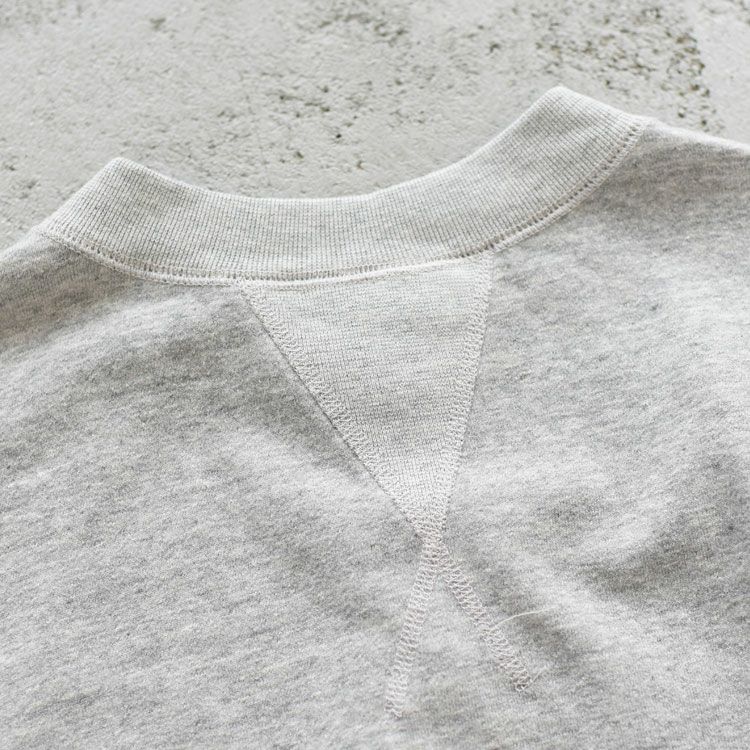 ボトムインできるスウェットを作りたくて、薄手の生地からオリジナルで作ったガゼットスウェット。インすることを前提に作っているので、裾にはリブをつけず、ボトムの中で生地がゴロつくのを軽減しています。大きめのガゼットが前後に付いていて、生地が薄いと寂しくなりがちな後ろ姿も可愛く仕上げています。