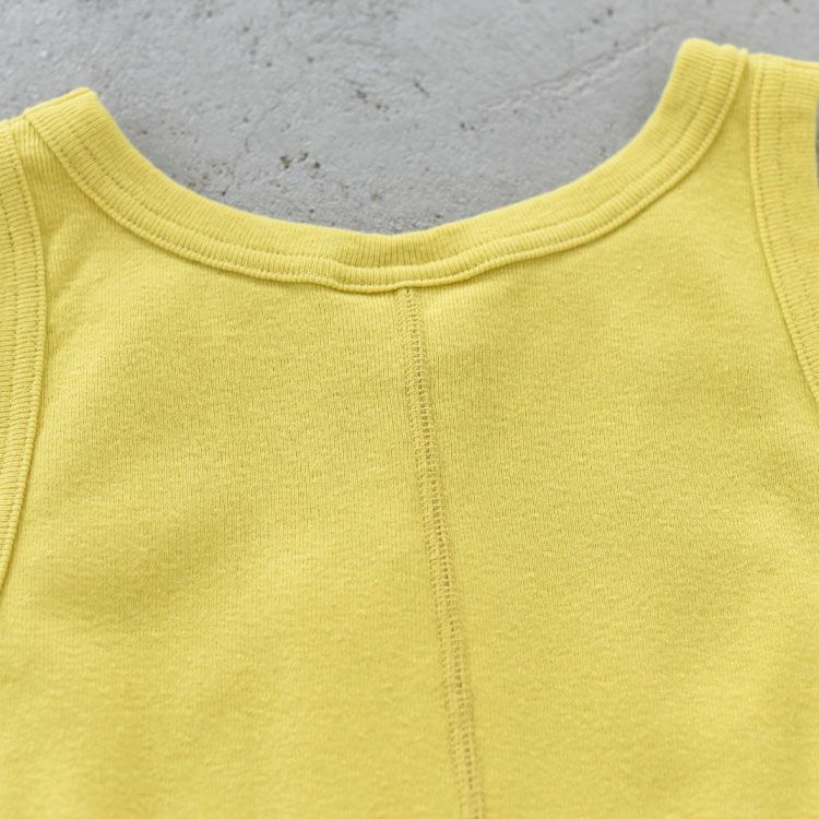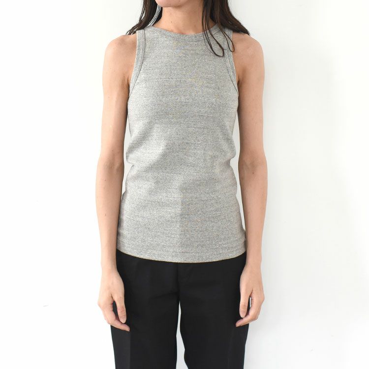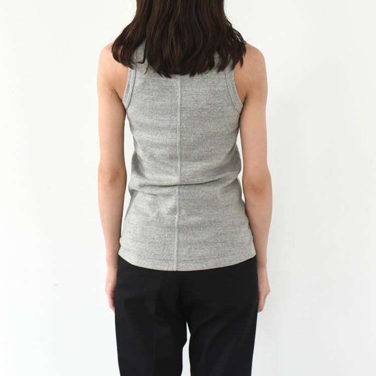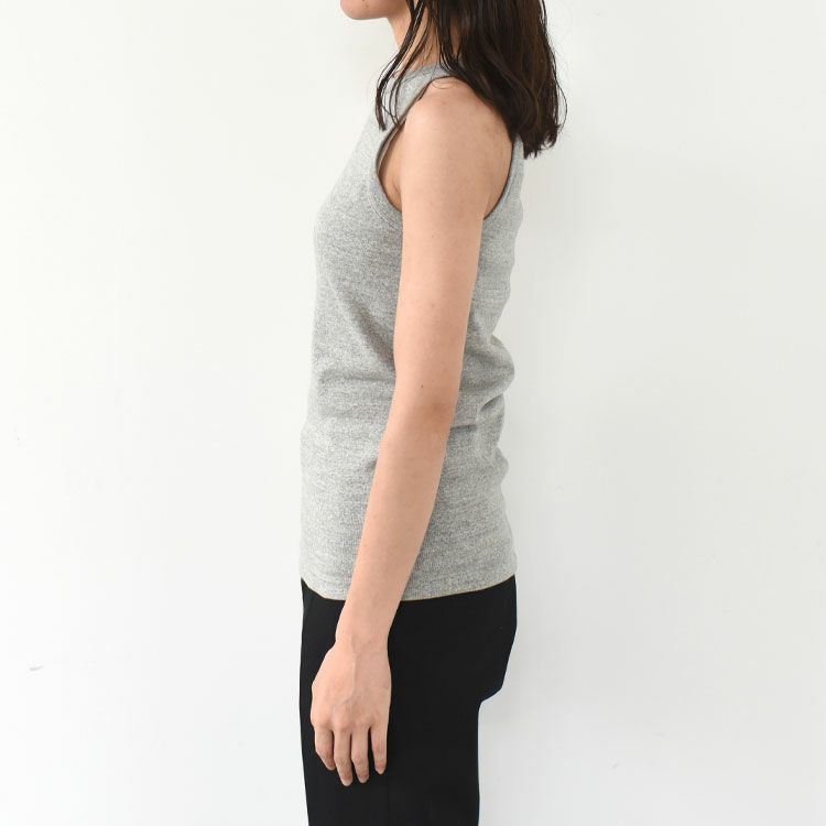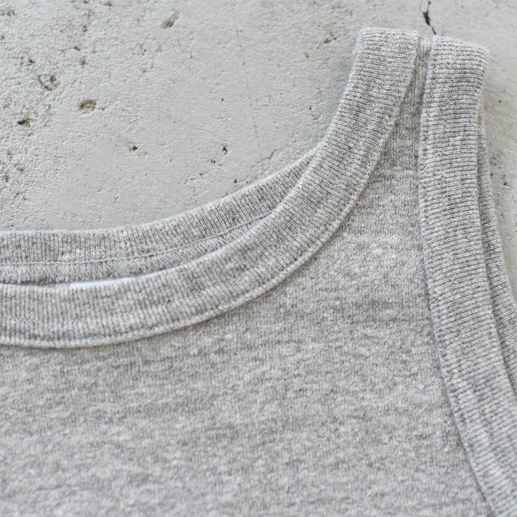 アメリカンヴィンテージ復刻素材を使用したタンクトップです。 程よい肉厚で柔らみがあり、リサイクルコットンを使用しているので環境も意識したアイテムとなっております。 首が詰まっていてアームホールが空きすぎていない、尚且ついかつくみえないデザインを意識して作りました。モデル着用サイズsize:F color:BROWN(48)MODEL DATA height:172cm