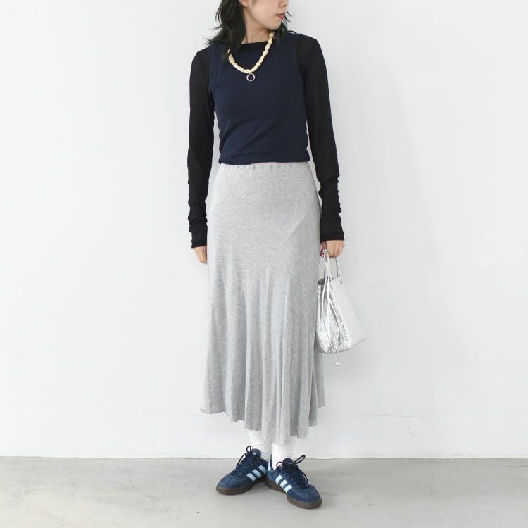 長袖Tシャツに左脇にロングスリットを施しレイヤードを楽しめるデザインにています。