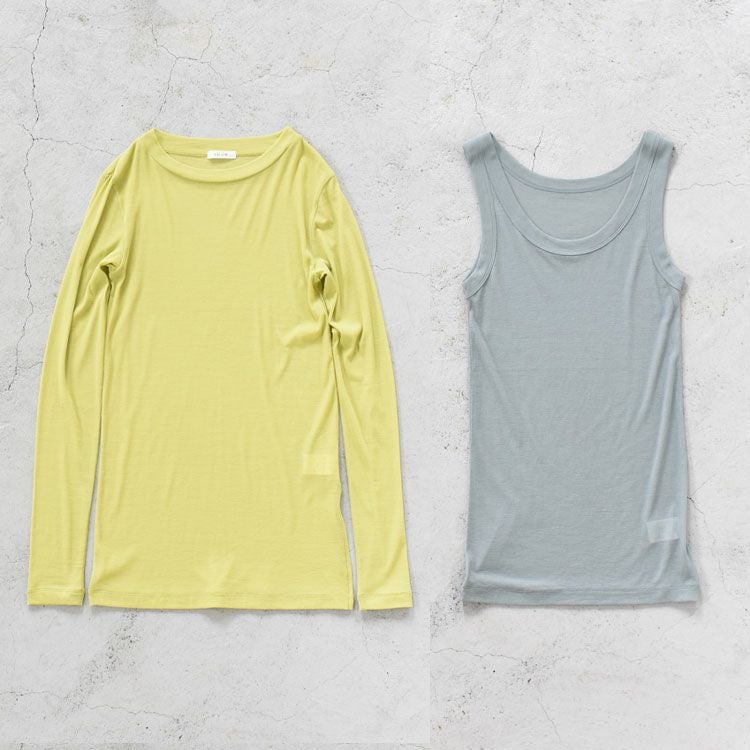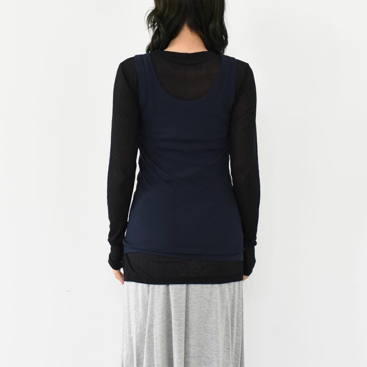 タンクトップを上に重ねても、長袖Tシャツの中に着ていただいてもOKです。
