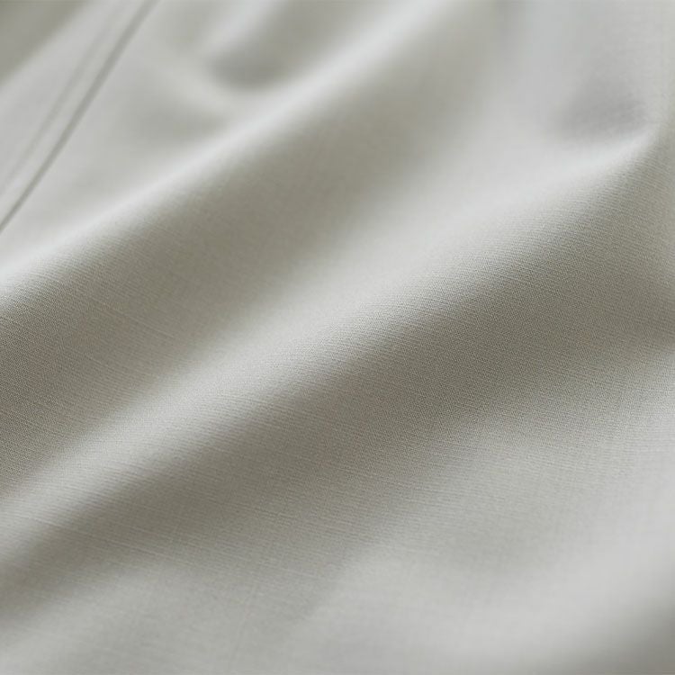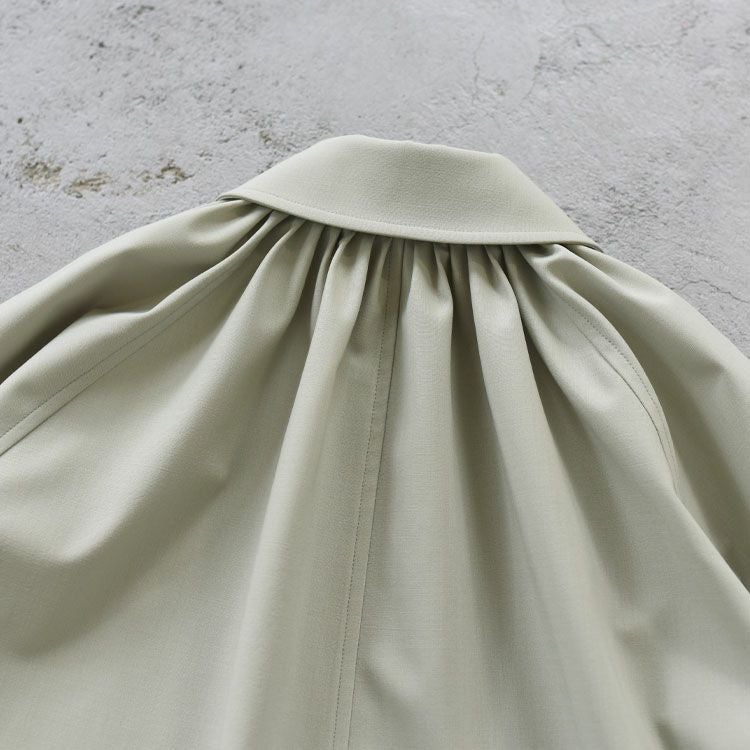 ほどよいバランスのショート丈ジャケット。ふんわりとしたバックギャザーが女性らしさをプラスしています。サイロフィル糸を使用したセミ強撚の2WAYストレッチトロ素材です。ウールのしなやかさと、繊細な光沢、さらりとした表面の肌触りが特徴で、オケージョンにもカジュアルにも合う、ESLOWオリジナル素材です。
