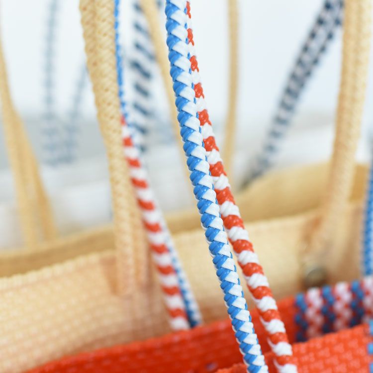 バッグ本体からハンドル部分にいたるまで、紐がしっかりと編み込まれておりとても丈夫に作られています。また、水に濡れても平気な素材でできているため、水洗いが可能です。雨の日はもちろん、習い事のお道具入れ、海や山へのレジャーにも最適です。Letraのメルカドバッグは、メキシコに暮らす職人たちの手によってひとつずつ丹念に作られています。ハンドメイドのぬくもりが感じられる商品です。