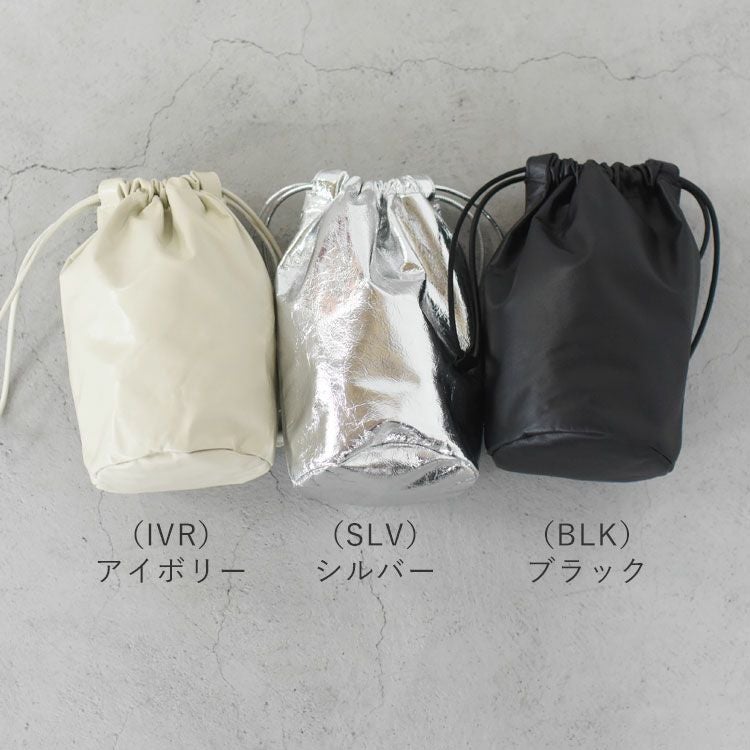 レザーのシンプルなドロストバッグ。マチ付きで、ミニ財布・スマホ・ハンカチ等が収まる程良いコンパクトなサイズ感です。リップやイヤフォン等を収納できる、同色展開のLeather Mini Pouchを、一緒に付けていただくのもおすすめです。