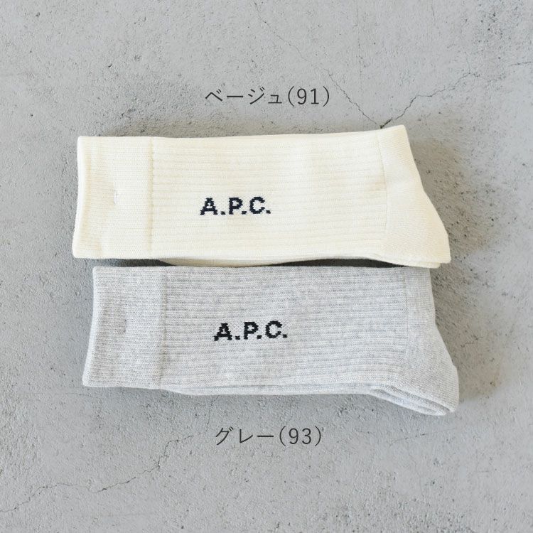 生成にはダークネイビー、グレーには黒の'A.P.C.'ロゴを側面に配しています。